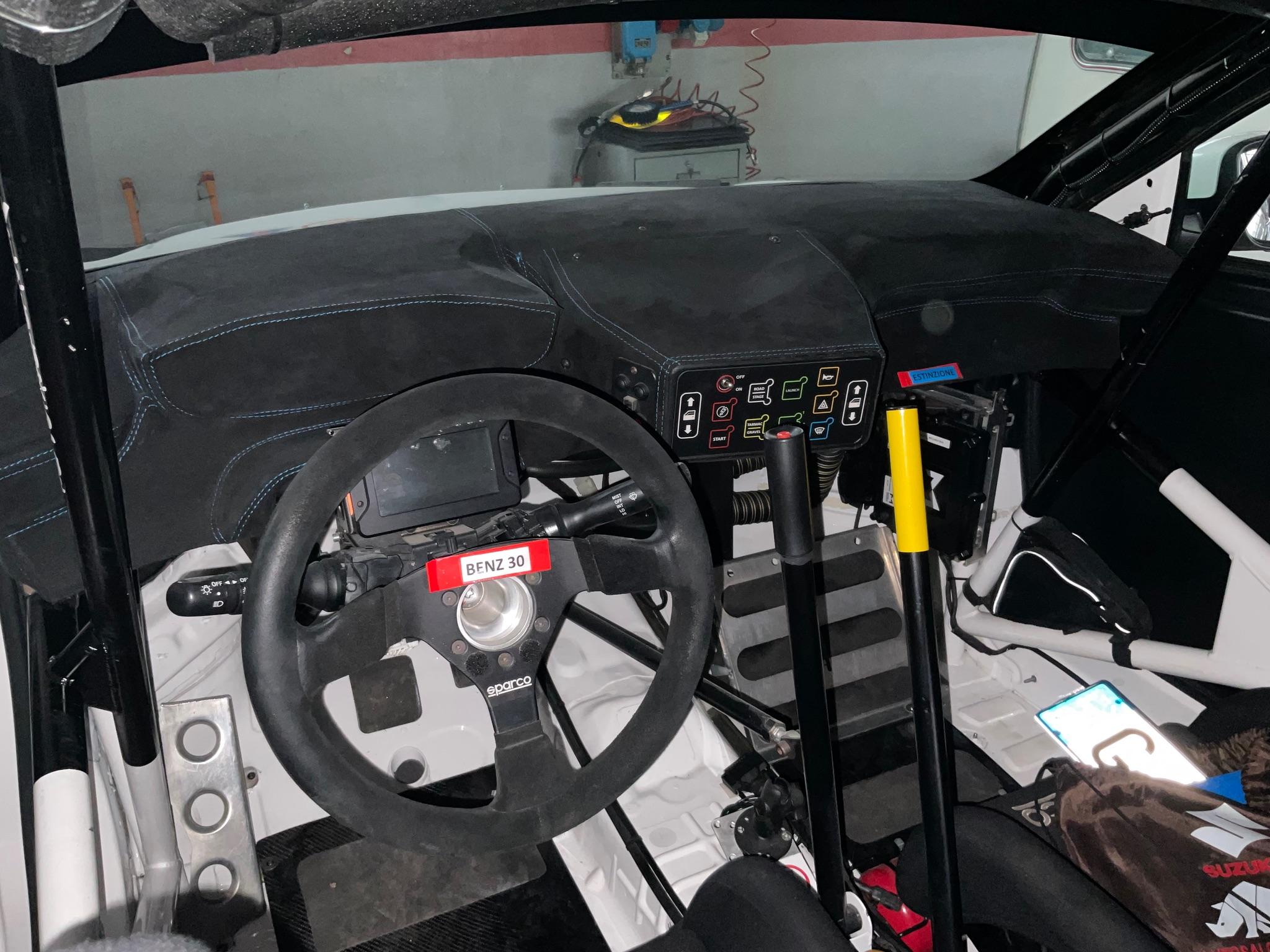 The car was purchased new in France from Loeb Racing in December 2022. It has 1,200 km of special stages and has already been updated with the latest electronics (see photo; when you start the car, the Stellantis logo appears on the dashboard). It has also just been updated with a new brake disc flange (see photo). The fire extinguisher, fuel tank and seats expire at the end of 2027.